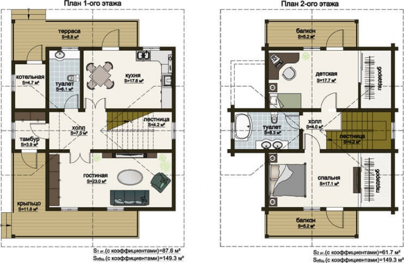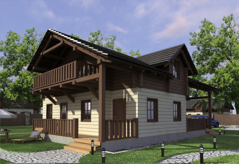 Шале проект дома из кирпича и клееного бруса 10х8м КП1516 149.3 кв.м.